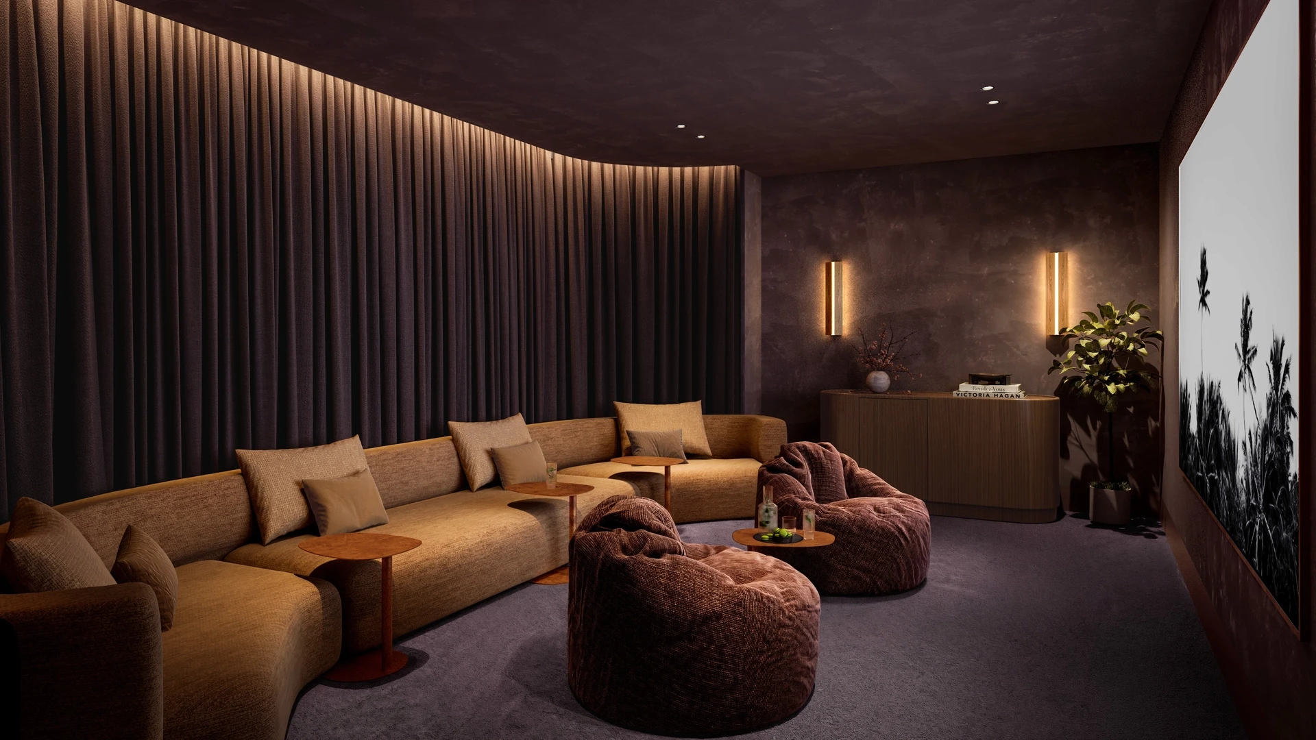 Soft lighting and rich textures wrap the room in calm. Some seats draw people together, others offer a quiet corner to disappear into the story. The space recognizes that film is both a shared moment and a personal escape.