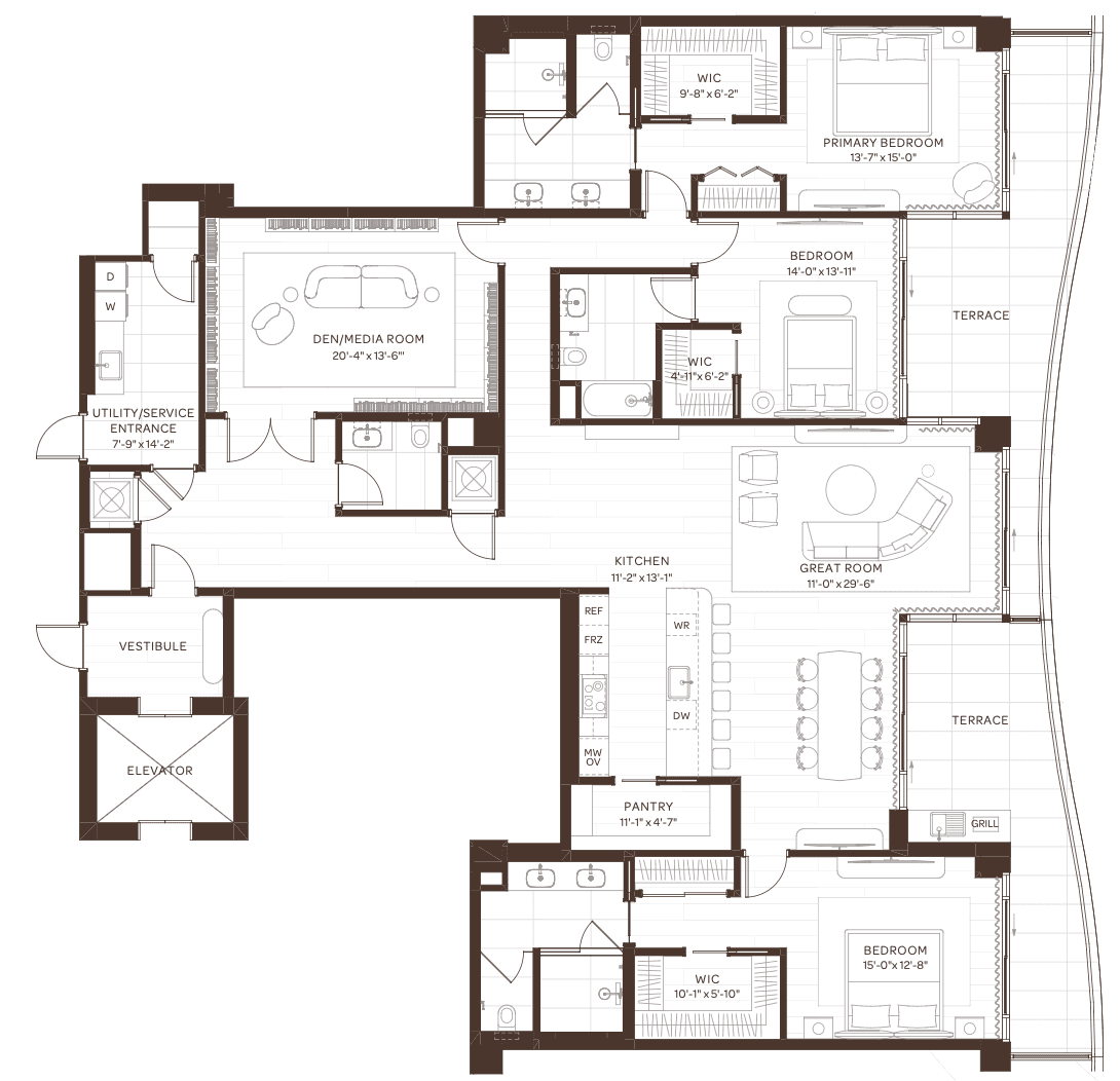 Curated for ease and intimacy. Custom furniture, woven rugs, and warm wood tones set the tone for daily rituals or quiet gatherings. Subtle references to vintage Palm Beach design add local context.